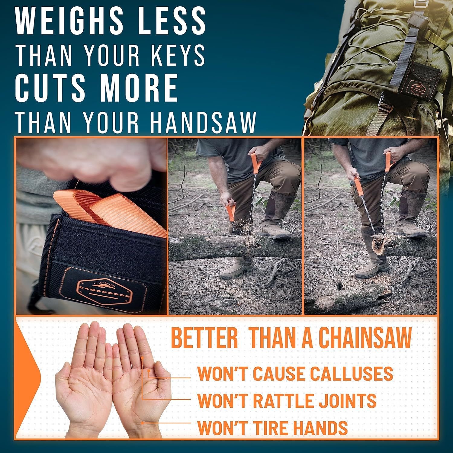 3. Access Hard-to-reach Areas: The hand rope chain saw, is designed to reach areas that cannot be reached by ordinary chain saws, making it ideal for cutting in confined spaces or when precision is required. Ideal for outdoor use by campers, backpackers, fishermen, hikers, and others.