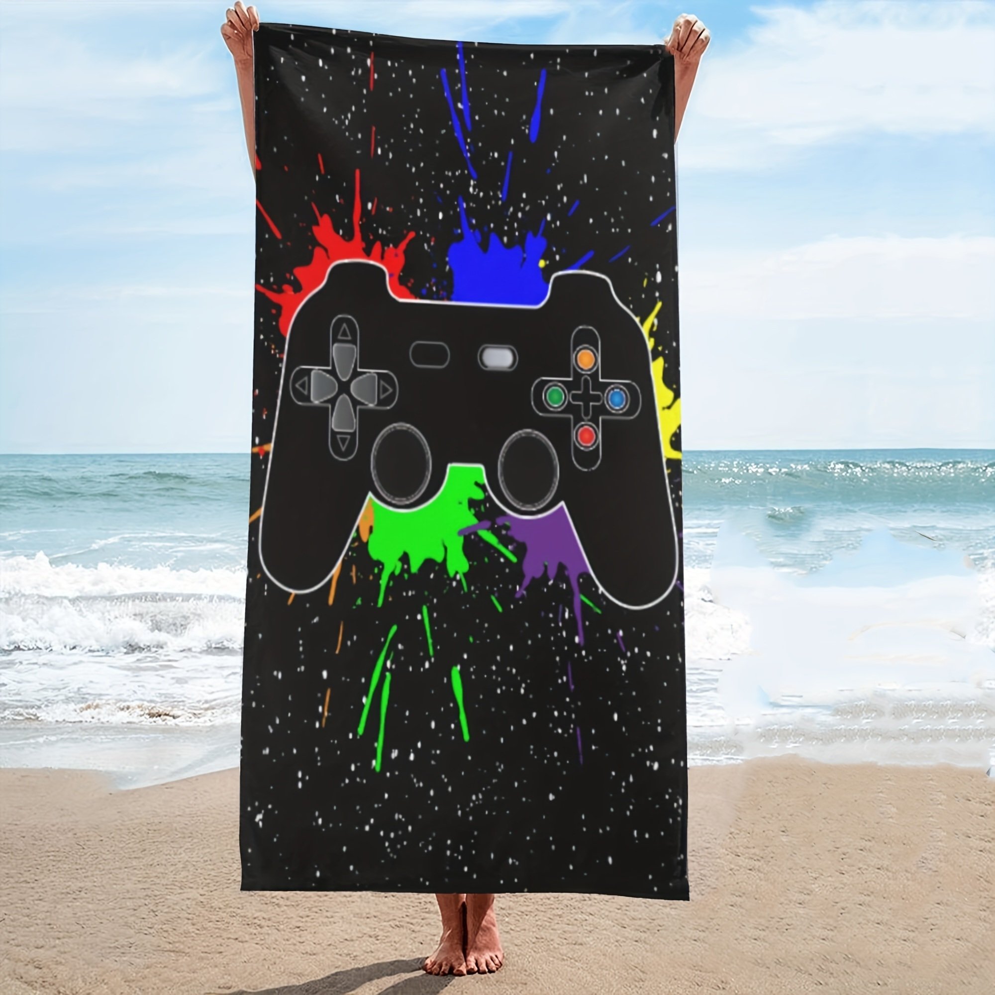 1pc Oversized Sandproof Beach Towel; Game Joystick Pattern; Fast Dry Beach Accessories; For Travel Swim Pool Party Yoga Camping 59"x29"; Bathroom Acce